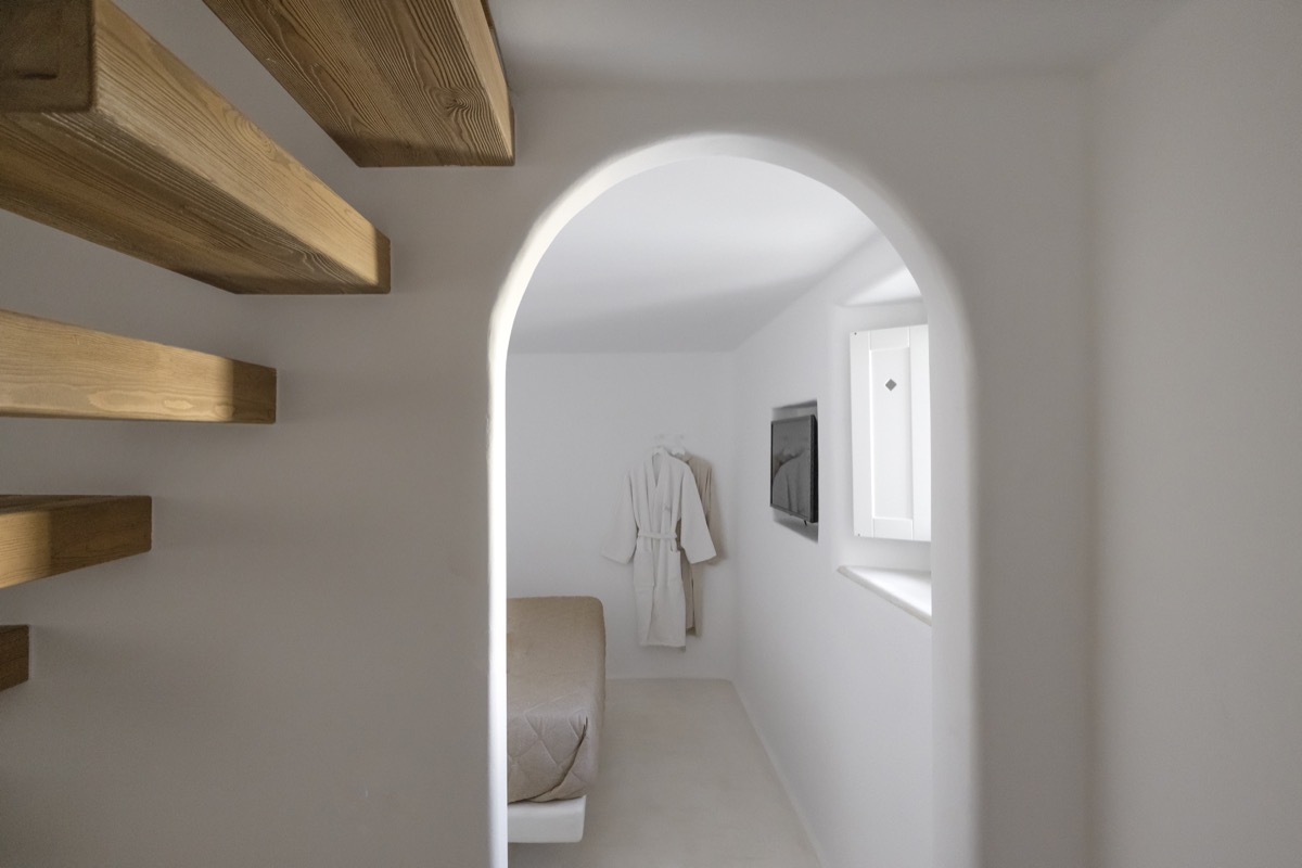 Designed with soft curves, warm textures, and an airy sense of openness, the Deluxe Suite unfolds across two open-plan levels and accommodates up to 4 guests. Two serene sleeping areas, each with a comfortable double bed, create peaceful corners for rest and relaxation.