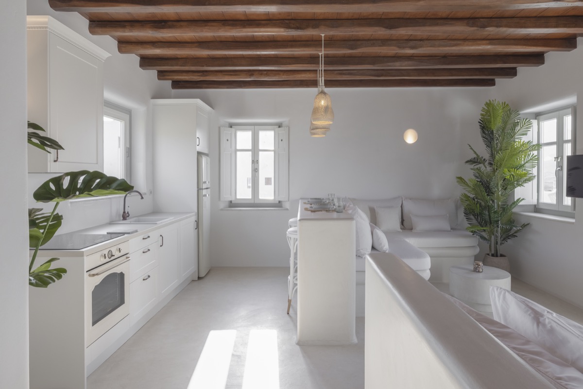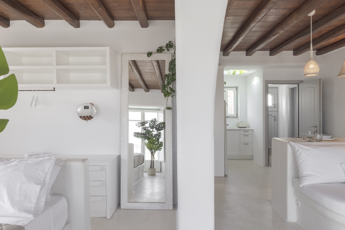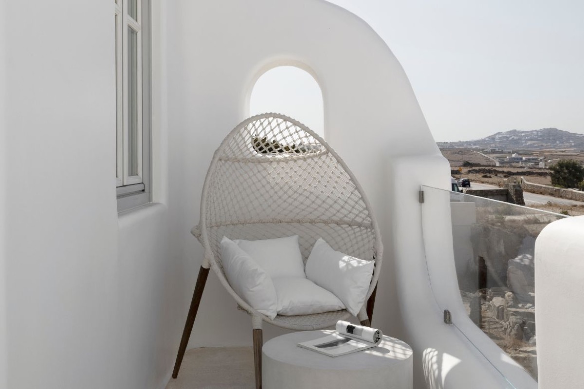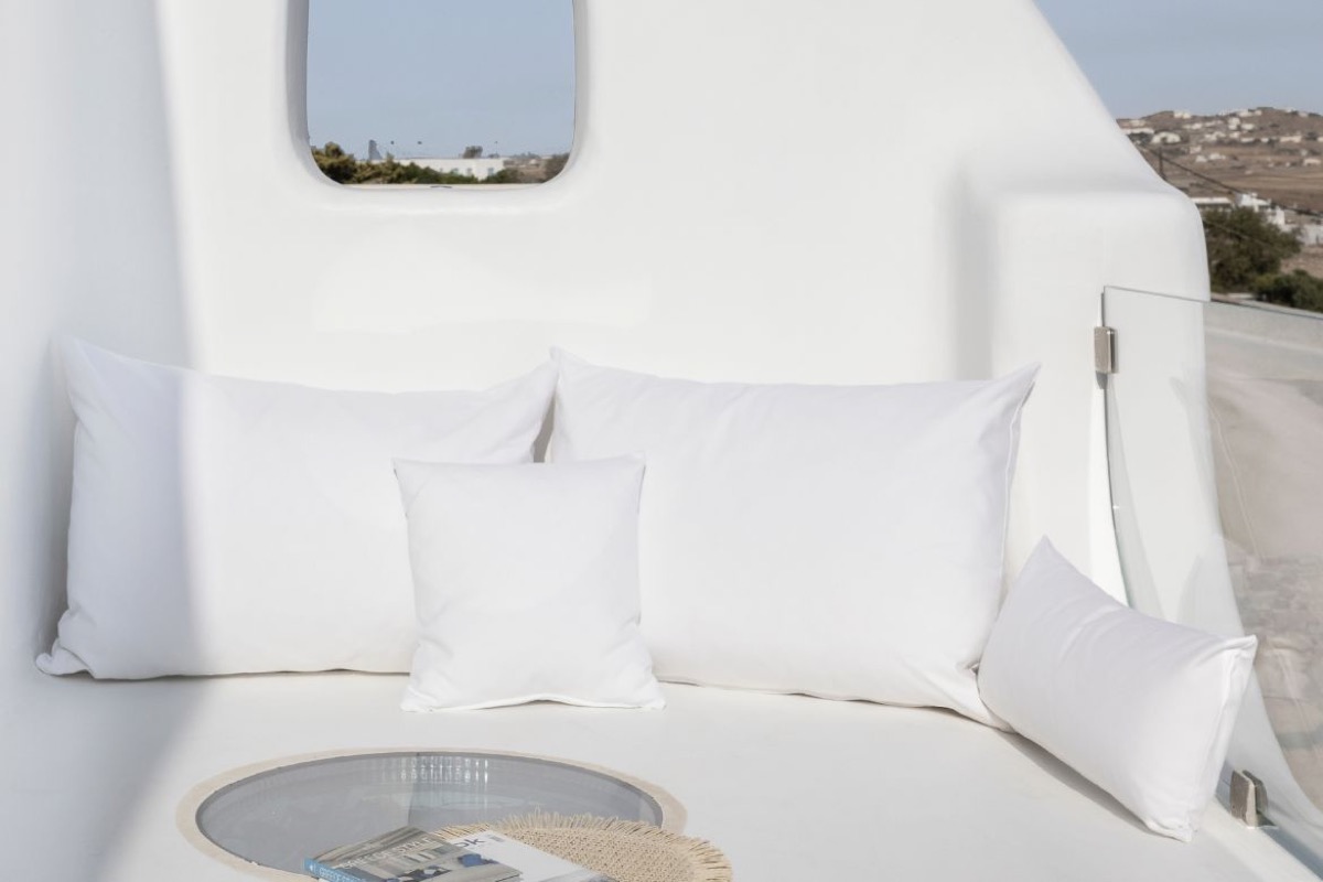 The Superior Suite with Sea View - Ortygia’s signature suite - epitomizes the timeless elegance of Cycladic architecture. Designed for up to 2 guests, it is an open-plan suite featuring a double bed and a living area with a comfortable sitting space, offering sea views and creating a serene and inviting retreat.